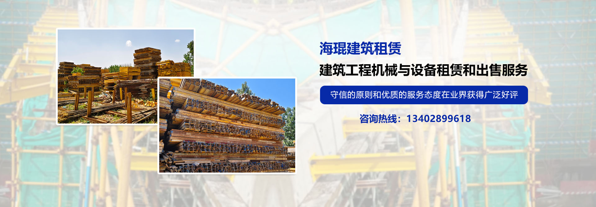 四川海琨建筑机具租赁有限公司正式成立于2019年。公司核心团队源自2007年,拥有超过十七年的深厚行业积淀,公司目前占地6000余平方米,固定资产5000余万元,流动资产3300余万元。我们专注于提供规格品类齐全、数量充足的建筑机具租赁,包括:新型悬挑及普通工字钢、卸料平台、铺路钢板、钢板桩(带专业施工)、钢筋堆放架等。联系电话:13402899618(明海波)